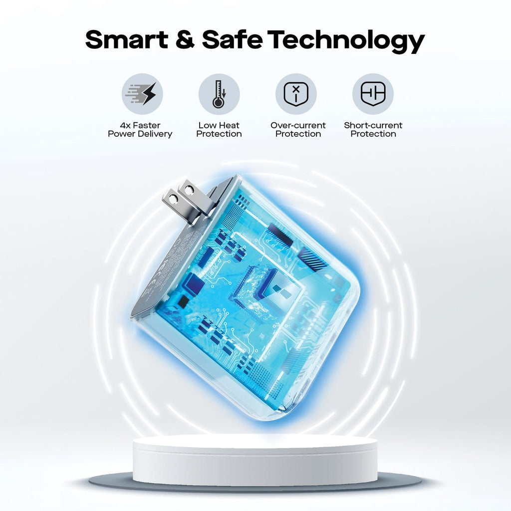 This 100-Watt Wall Charger from Mobile Pixels is a fast-charging charger, designed for all your devices such as laptops, Macbooks, iPhones, iPads, headphones, smartwatches, and tablets. It gives more power and faster charging speed, and it's safe and convenient. It also comes with a foldable plug design which makes it super compact and easy to carry. The fast-charging charger also supports 4 devices charging at the same time. Each port intelligently identifies your device and seeks to maximize its charge speed. The built-in protection system combines advanced safety features such as the output control that ensures stable current and prevents overloading and overheating to let you charge multiple devices with peace of mind.