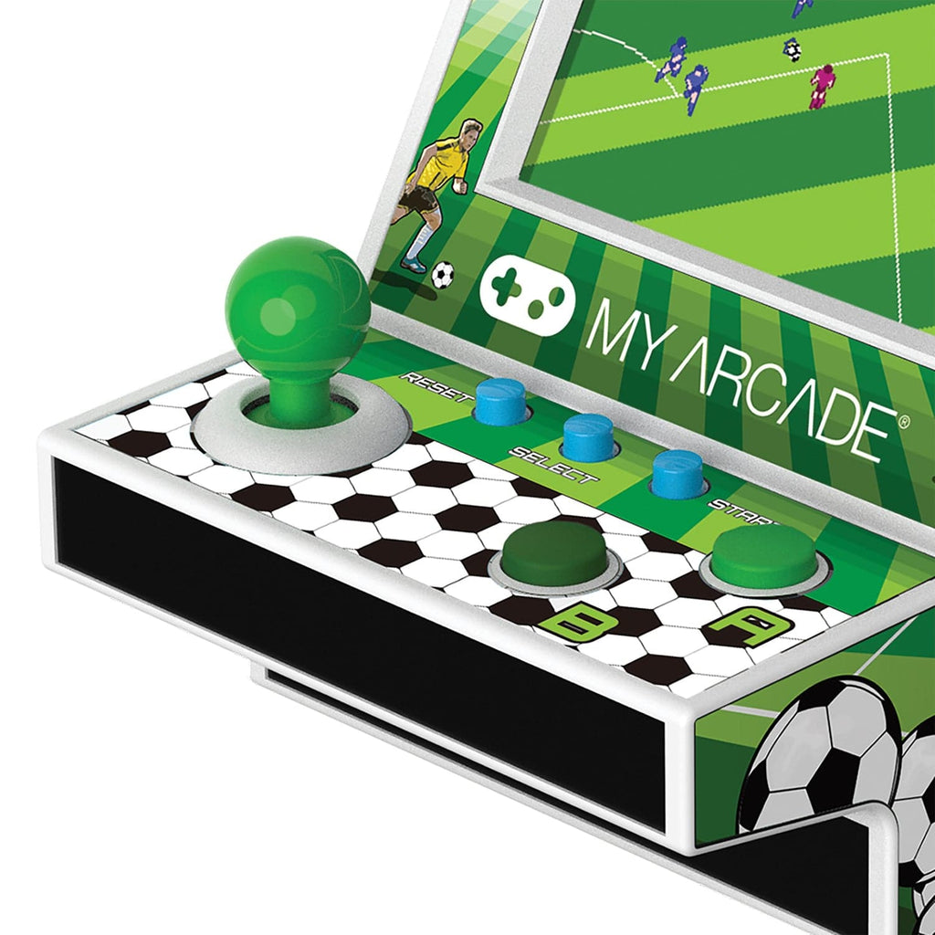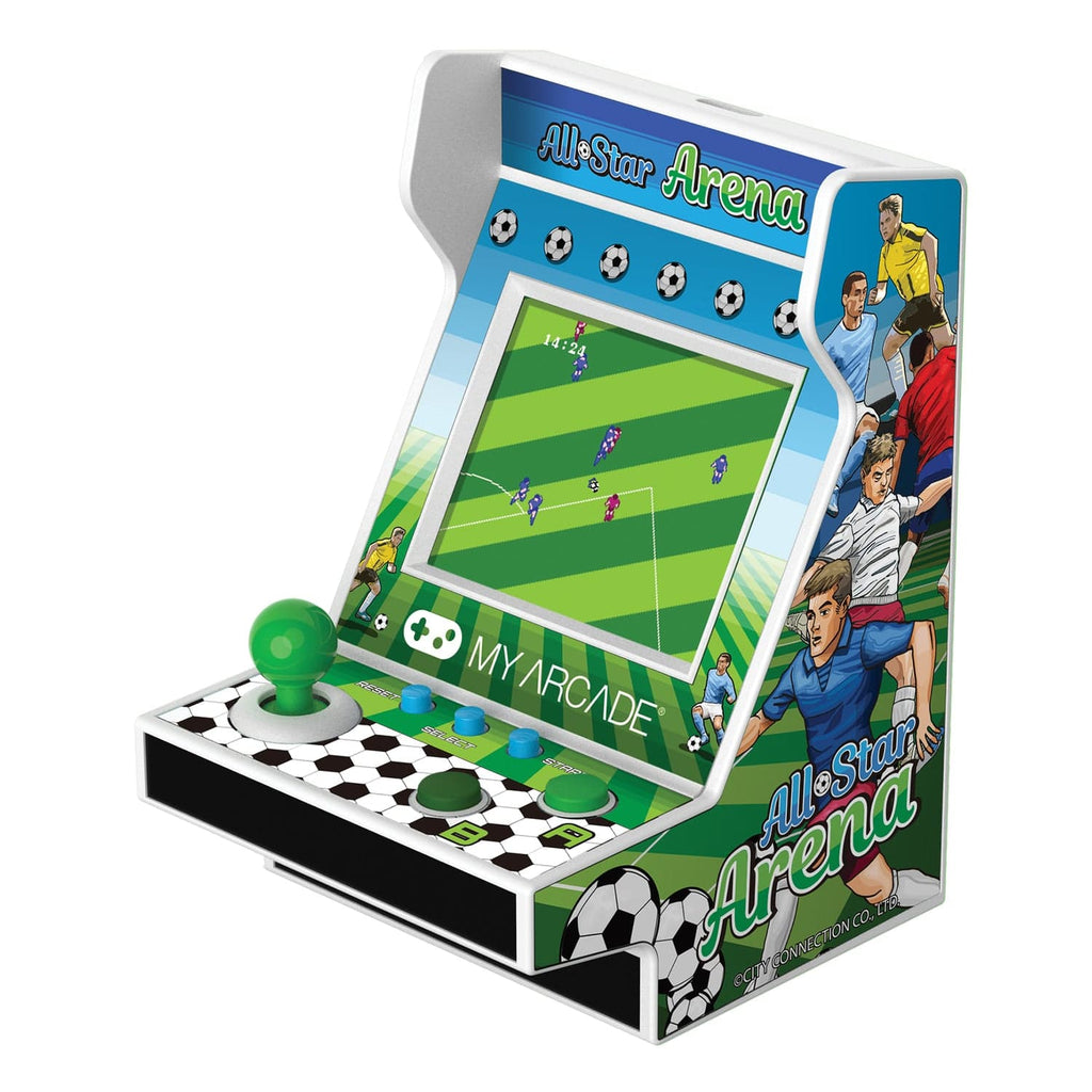 My Arcade All-Star Arena Pico Player is a 3.75-in. fully playable, portable tiny arcade machine with 107 retro games, a 2-in. screen with color display, and is battery powered (batteries not included). It includes fully playable versions of GOAL!, BASES LOADED 1, 2, 3, and 4, RACKET ATTACK, and HOOPS. The All-Star Arena Pico Player features a full color screen to brightly display all 7 titles and is fine-tuned for hours of play through its emphasis on ergonomics and compact design. Plus, there are 100 additional retro-style games included for hours and hours of nonstop fun. It's ideal for long road trips, vacation travel, or use just about any time!