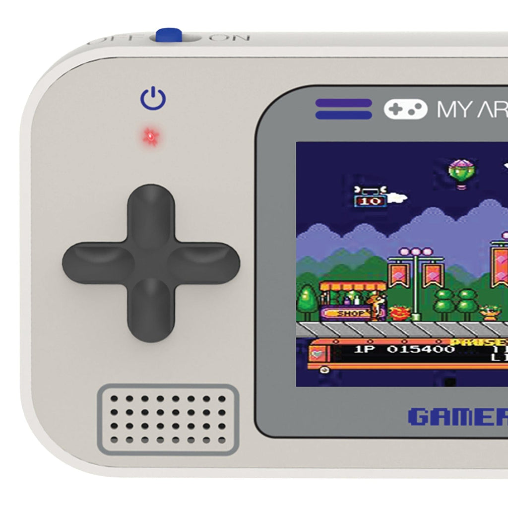 Soar the skies, solve puzzles, play golf or tennis, and much more! The Gamer V from My Arcade is a handheld video gaming system loaded with 220 fun and easy-to-play video games. Simply power on the system and start playing—anywhere, anytime! It's ideal at home, in the car, or just about anywhere you can imagine. This Gray and Purple handheld game player easily fits in your pocket, purse, bag or backpack! You'll always have your games at your fingertips with the Gamer V Classic! It's powered by 3 AAA batteries (sold separately).