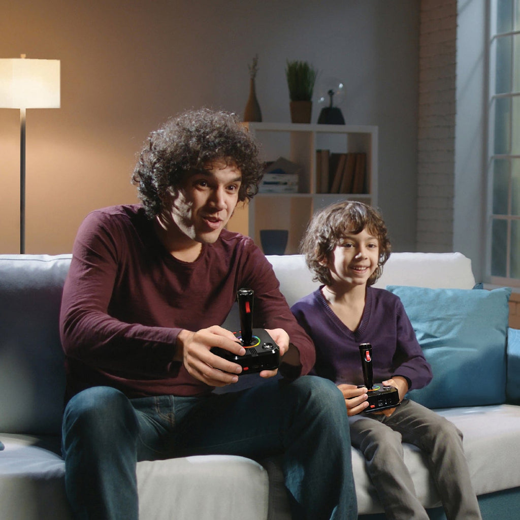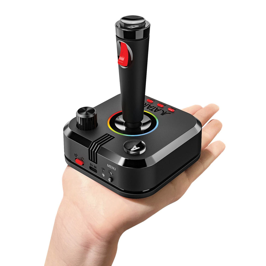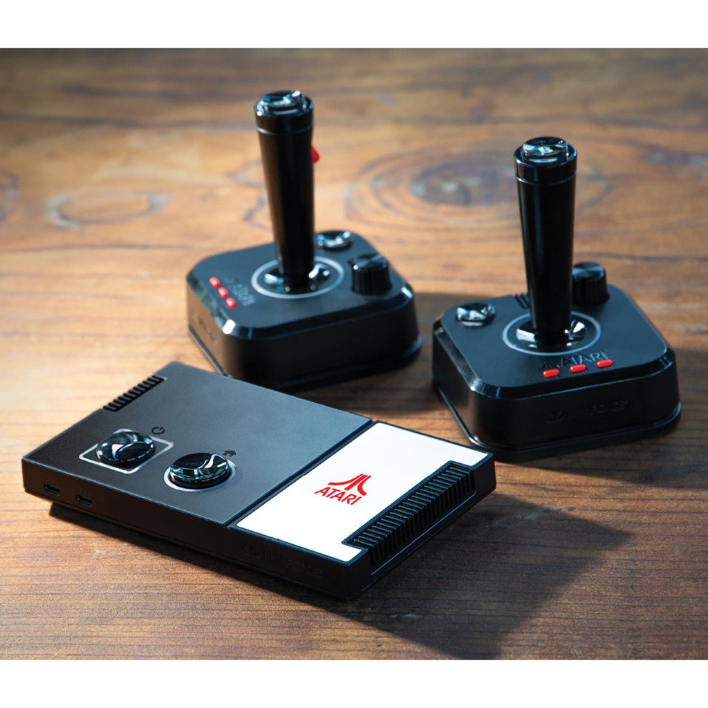 - Two 2.4-GHz wireless joysticks, inspired by original Atari® joysticks, including built-in paddles for games like Breakout®, Warlords®, and many more