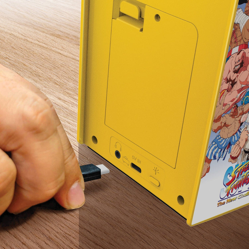 Enter the ring and get ready to rumble with the Super Street Fighter II Micro Player Pro! This officially licensed Capcom product features 2 classic games: Super Street Fighter II: The New Challengers and Street Fighter II: Special Champion Edition, providing hours of arcade-style entertainment. The full-color 2.75-in. screen, built-in speaker with volume control, and 3.5-mm headphone output make this Micro Player Pro ideal for both solo and group play. Brightness adjustment allows for comfortable gameplay in any lighting condition. Powered by 4 AA batteries or a USB-C cable (both sold separately), this compact console is ideal for any game room, office, or display case. The Super Street Fighter II Micro Player Pro brings the excitement of the World Warrior Tournament to the palm of your hand. Join the battle and become the ultimate champion!