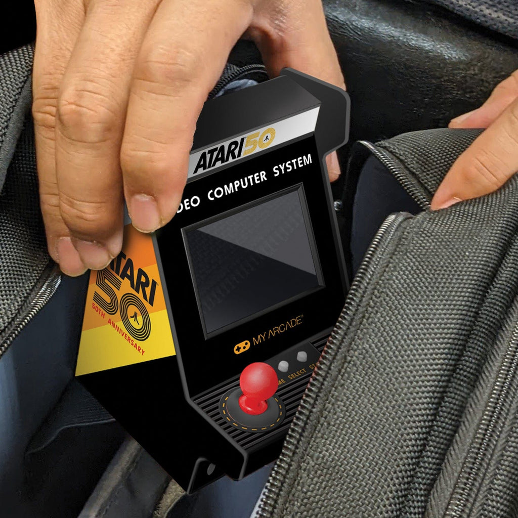 The Atari Nano Player Pro Portable Retro Arcade from My Arcade is the ultimate gaming machine for retro enthusiasts! With 75 officially licensed titles, including classic games like Asteroids, Centipede, and Breakout, this pocket-sized arcade is ideal for reliving your favorite childhood memories on the go. Standing at just 4.8-in. tall, the Nano Player Pro features a full-color 2.4-in. screen and an intuitive user interface, making it easy to navigate through the extensive game library. And with bonus games included, there's always something new to discover. The built-in speaker with volume control provides an immersive gaming experience, while the option to power the Nano Player Pro with either 4 AAA batteries (not included) or a USB-C cable (not included) ensures that you can take your gaming on the road or enjoy it from the comfort of your own game room, office, or display case. Don't miss out on the chance to own the Atari Nano Player Pro Portable Retro Arcade and experience the thrill of classic arcade gaming wherever you go!