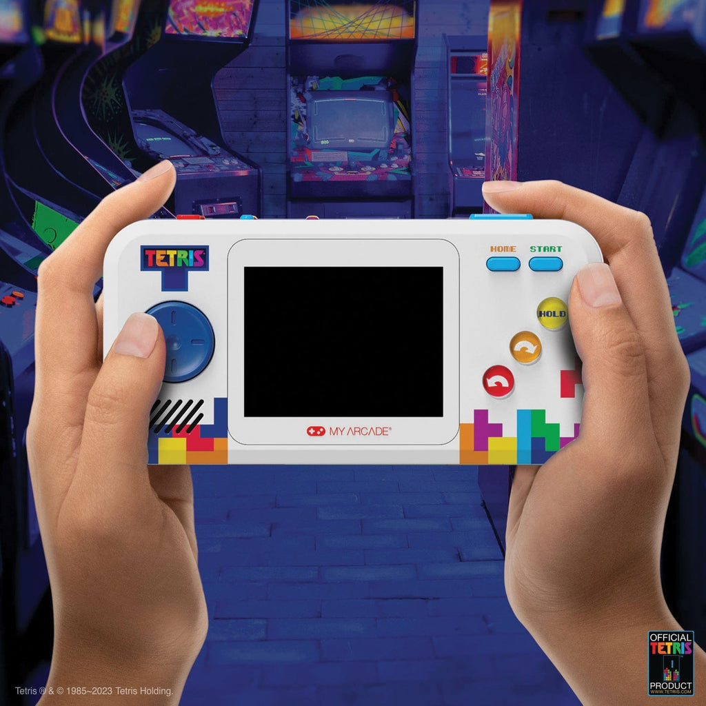 Get ready to experience the timeless classic puzzle game of Tetris with the Tetris Pocket Player Pro from My Arcade! This officially licensed title features geometric shapes that fall from the top of a playfield and must be fit together to form lines that disappear. But be careful, if the pieces aren't lined up correctly, they will eventually stack up to the top of the playfield, and the game is over. Featuring a full-color 2.75-in. screen, the Tetris Pocket Player Pro is the ideal size for gaming on the go. It can be powered by either 4 AA batteries or a USB-C cable (both sold separately), making it incredibly convenient for travel or when you're on the move. Additionally, the device comes with a built-in speaker with volume control, a 3.5-mm headphone output for private listening, and brightness adjustment for optimal visibility. The Tetris Pocket Player Pro also boasts an ergonomic design for comfortable play and includes a lanyard so you can keep it close by at all times. Whether you're a longtime fan of Tetris or a newcomer to the game, the Tetris Pocket Player Pro is the ideal addition to your collection.