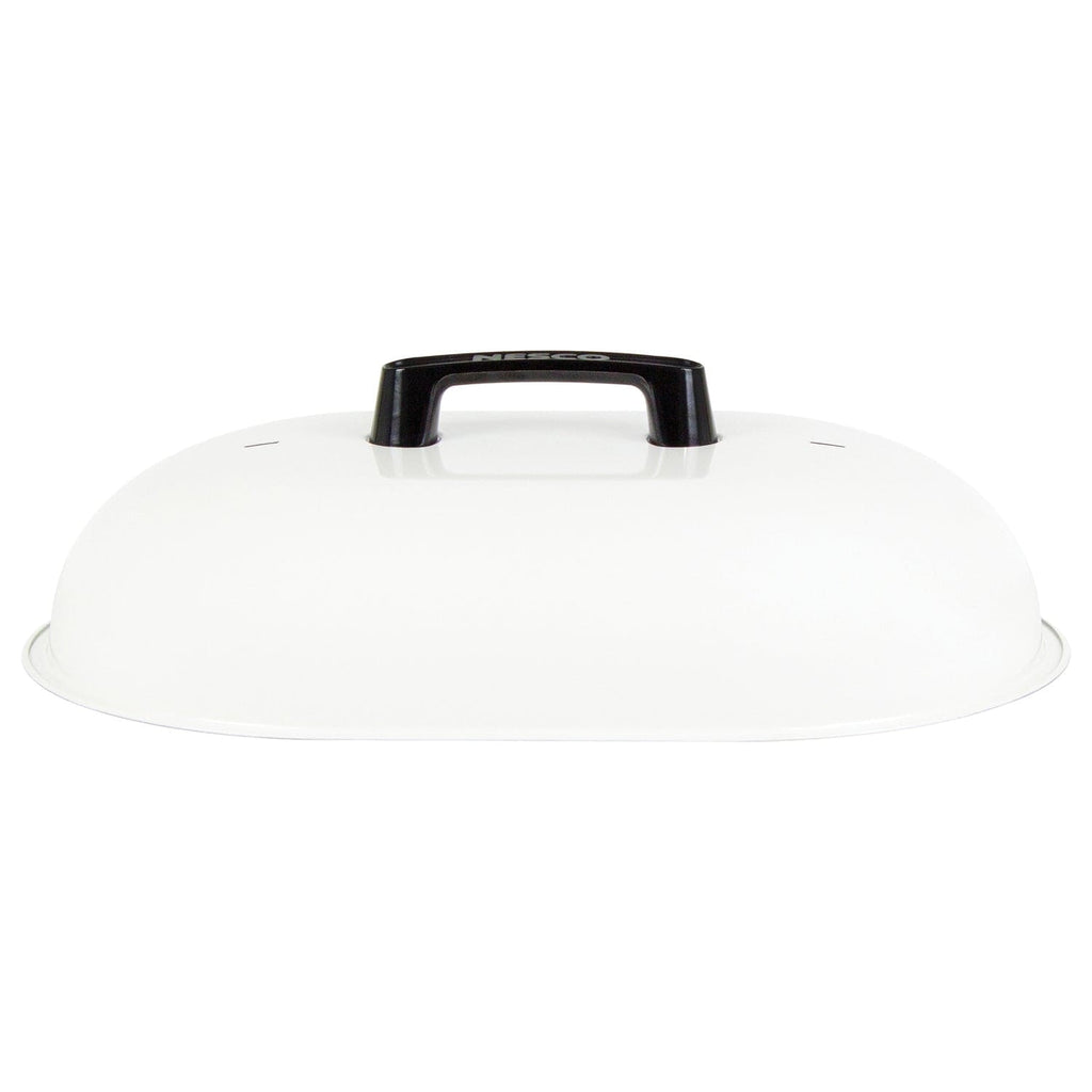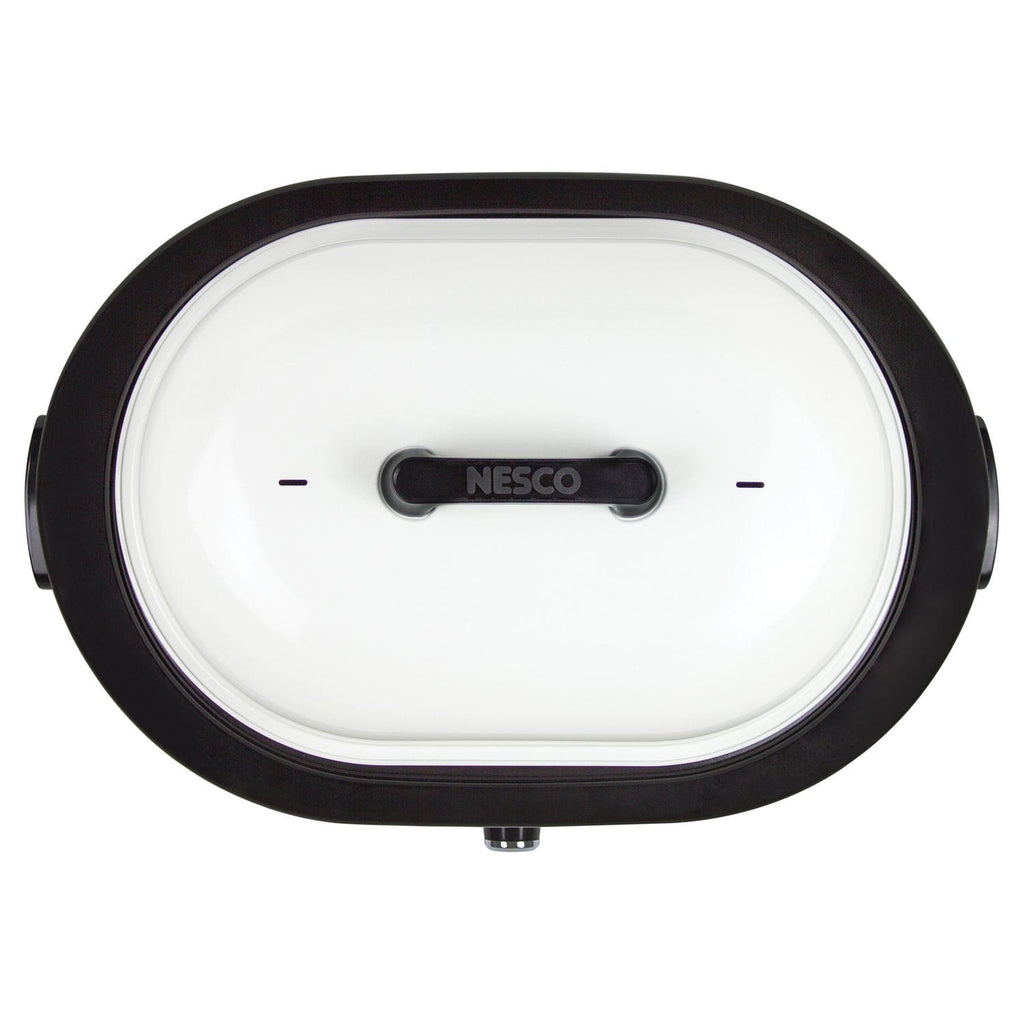 Serve up and celebrate with the White NESCO 18 Qt. Roaster! This versatile appliance is the classic that you’ve come to love for nearly 90 years, redesigned with you in mind. Roast, bake, cook, steam, slow cook, and serves, all in a single device. The 1,450 watt roaster base features Circle of Heat heating technology and a domed lid which allows for better air circulation and provides moist and even cooking. The removable, 18-qt. cookwell can roast a whole turkey up to 22 lbs., convenient for entertaining and large meals. Whether you're baking a ham, serving chili, or slow-roasting brisket, the full-range temperature control (200°F to 450°F) provides the versatility needed for a wide variety of cooking options. The durable porcelain enamel finish is easy to clean and ensures years of enjoyment. It includes a cooking rack with lift-out handles for baking and fat-free roasting. Set it to satisfy and bring that delicious flavor anywhere. The portable and convenient roaster is ideal for those special occasions and on-the-go family activities.