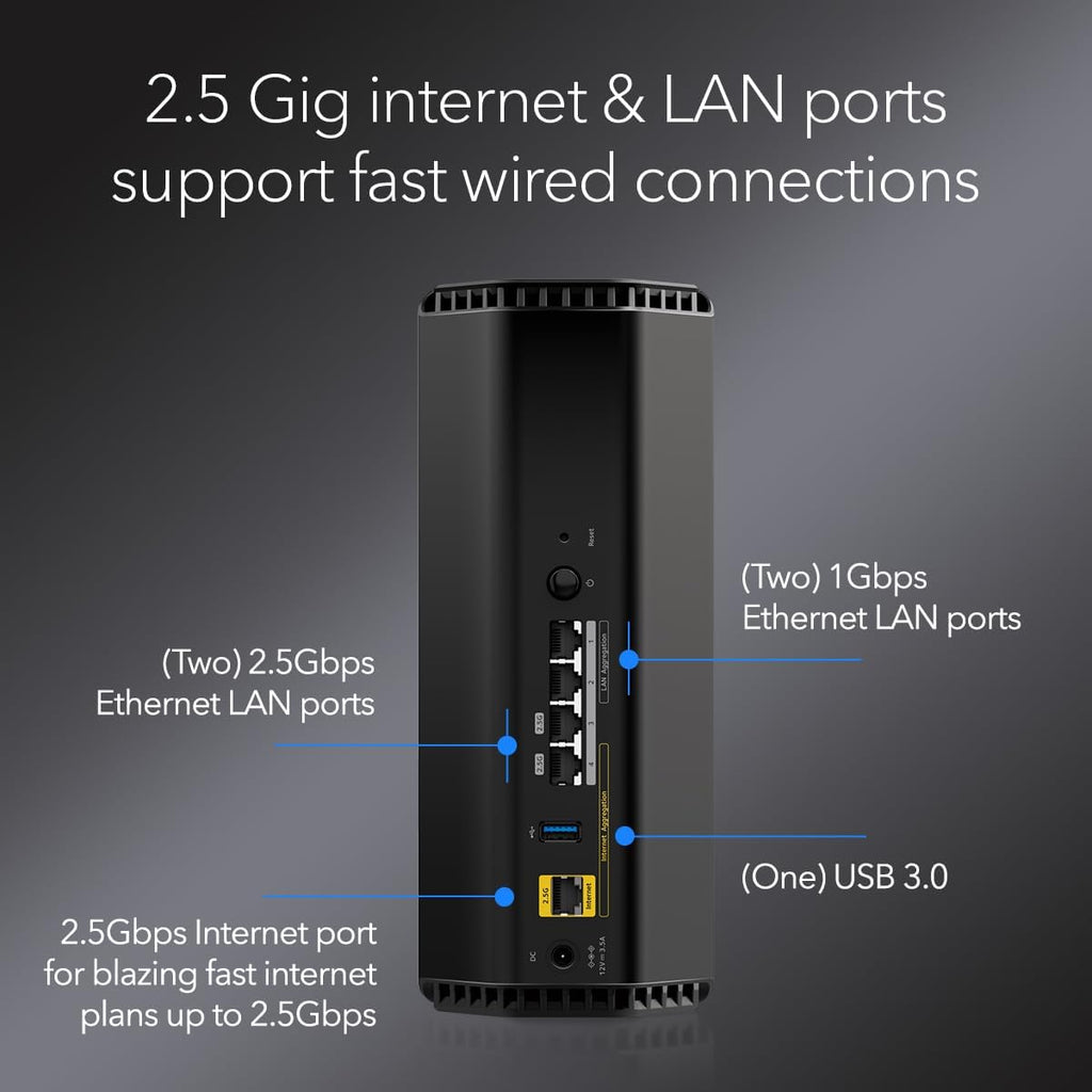 Multi-Gig Speeds with 2.5GbE Internet Port—Use the 2.5 Gig internet port for cable and fiber plans up to 2.5Gbps2. Compatible with any internet service provider.