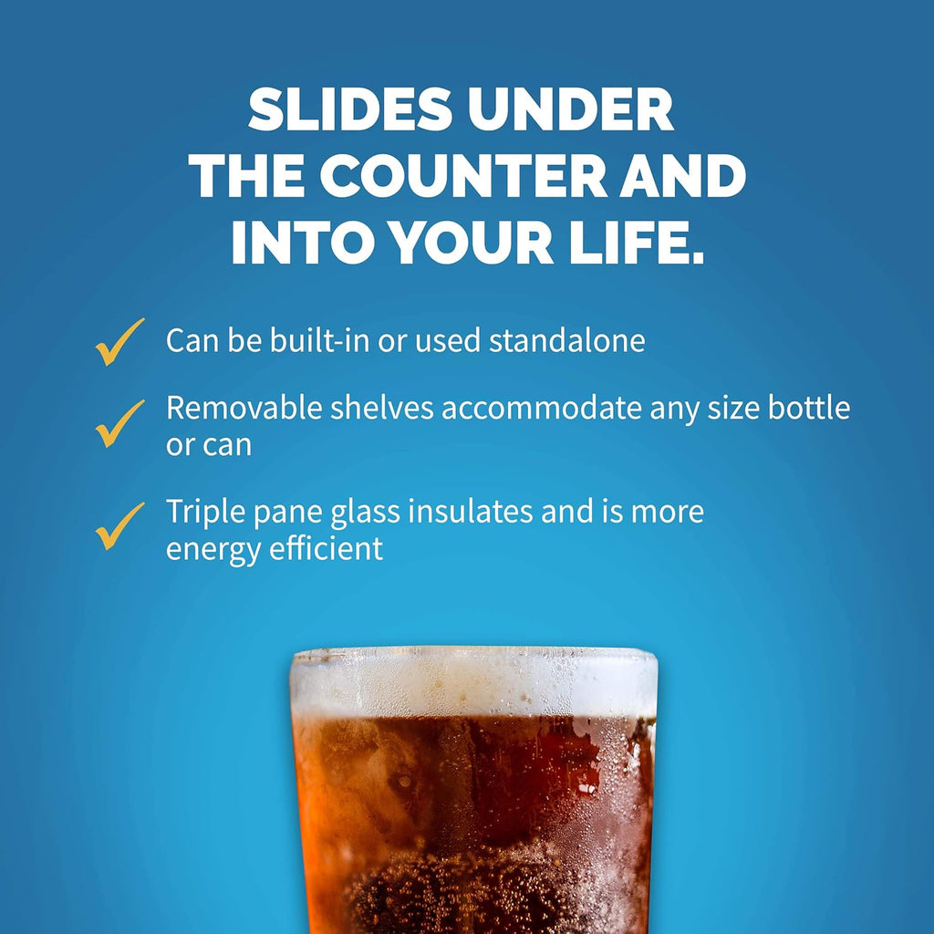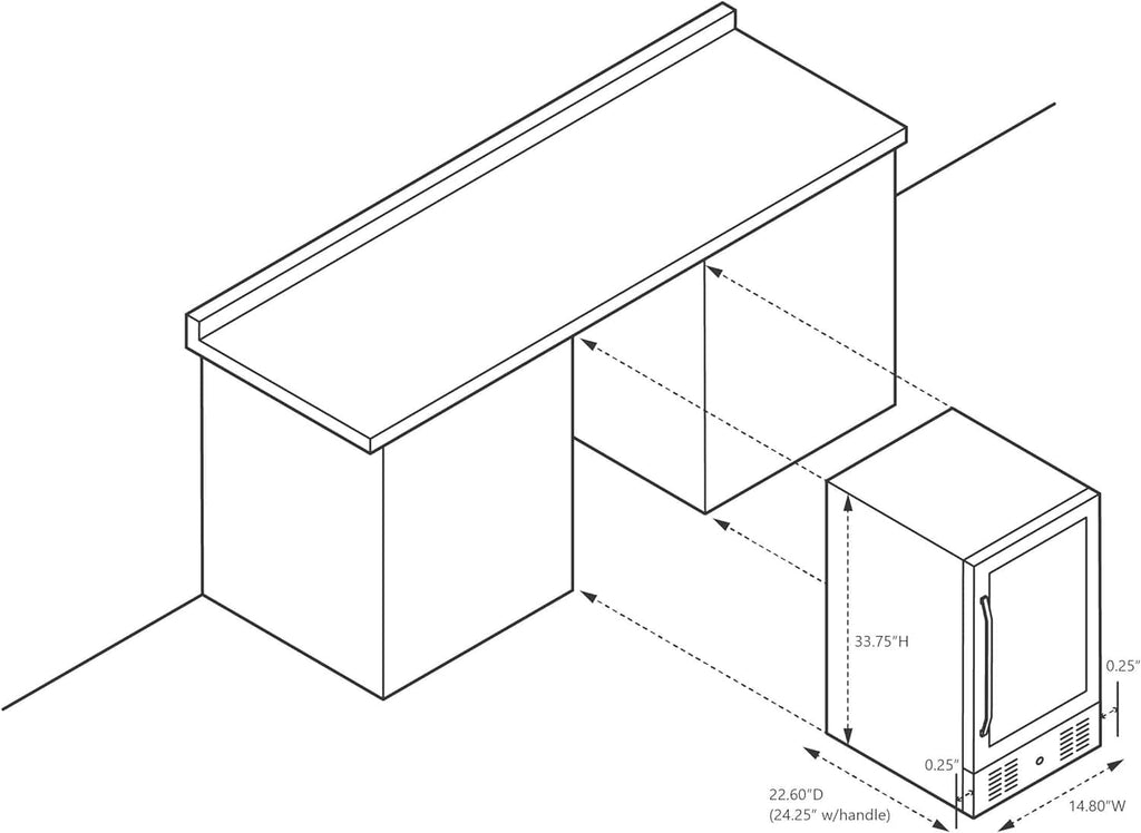 - [COMPACT DESIGN] - Our 15 Inch Beverage Refrigerator is great for fitting into base cabinets or stand alone unit, Making it a perfect fit for your kitchen, office, dorm, patio, indoor, or outdoor.