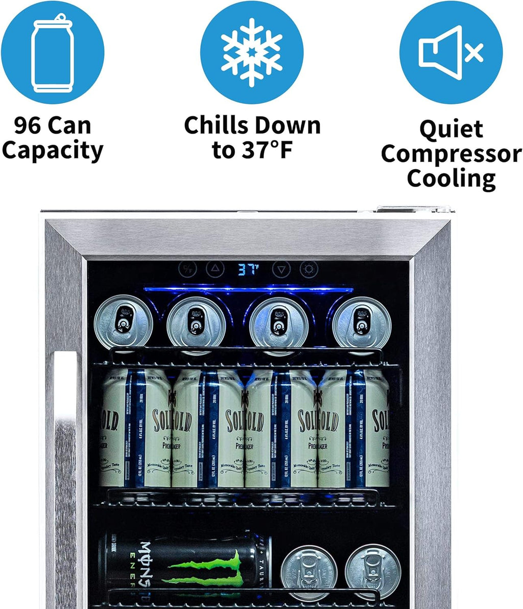 - [96 CAN STORAGE] - The smart interior design allows for you to up to 96 standard cans, that's equivalent to 16 six packs.