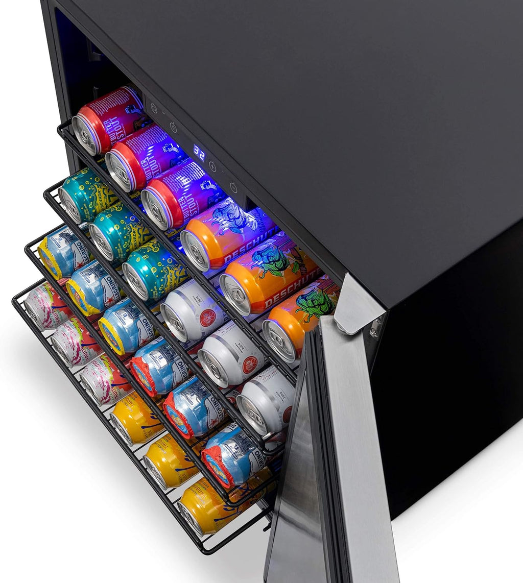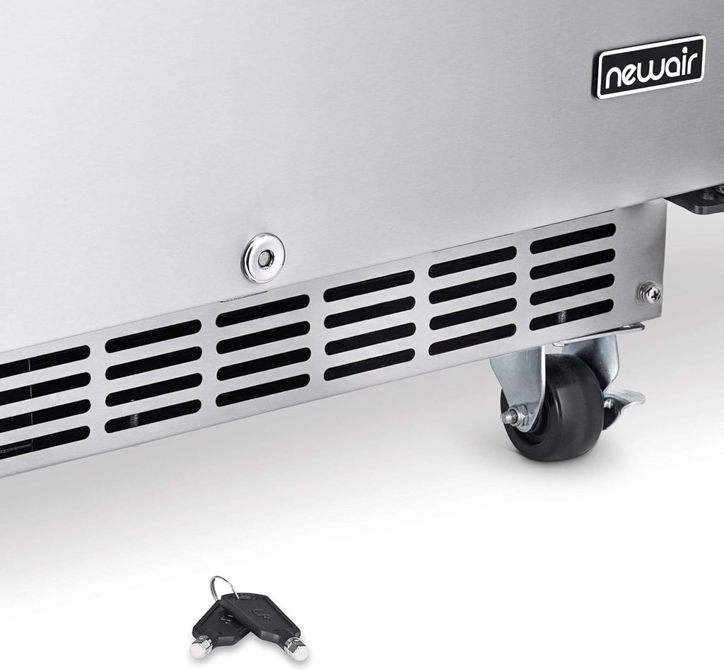 The NewAir 24” Outdoor Beverage Fridge comes with flushed hinges and a recessed kickplate, making it build-in ready to any standard 24” counter. Or, enjoy the flexibility that comes with using it as a freestanding unit. This fridge also has feet and attachable easy-glide castors. Effortlessly roll the unit to your deck or patio area or make it a permanent part of your outdoor grilling station.
