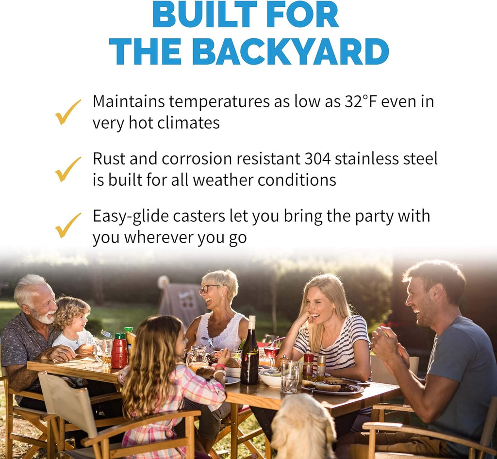 | Special Features | Easy Glide Casters, Weatherproof Stainless Steel, Auto-Closing Door |