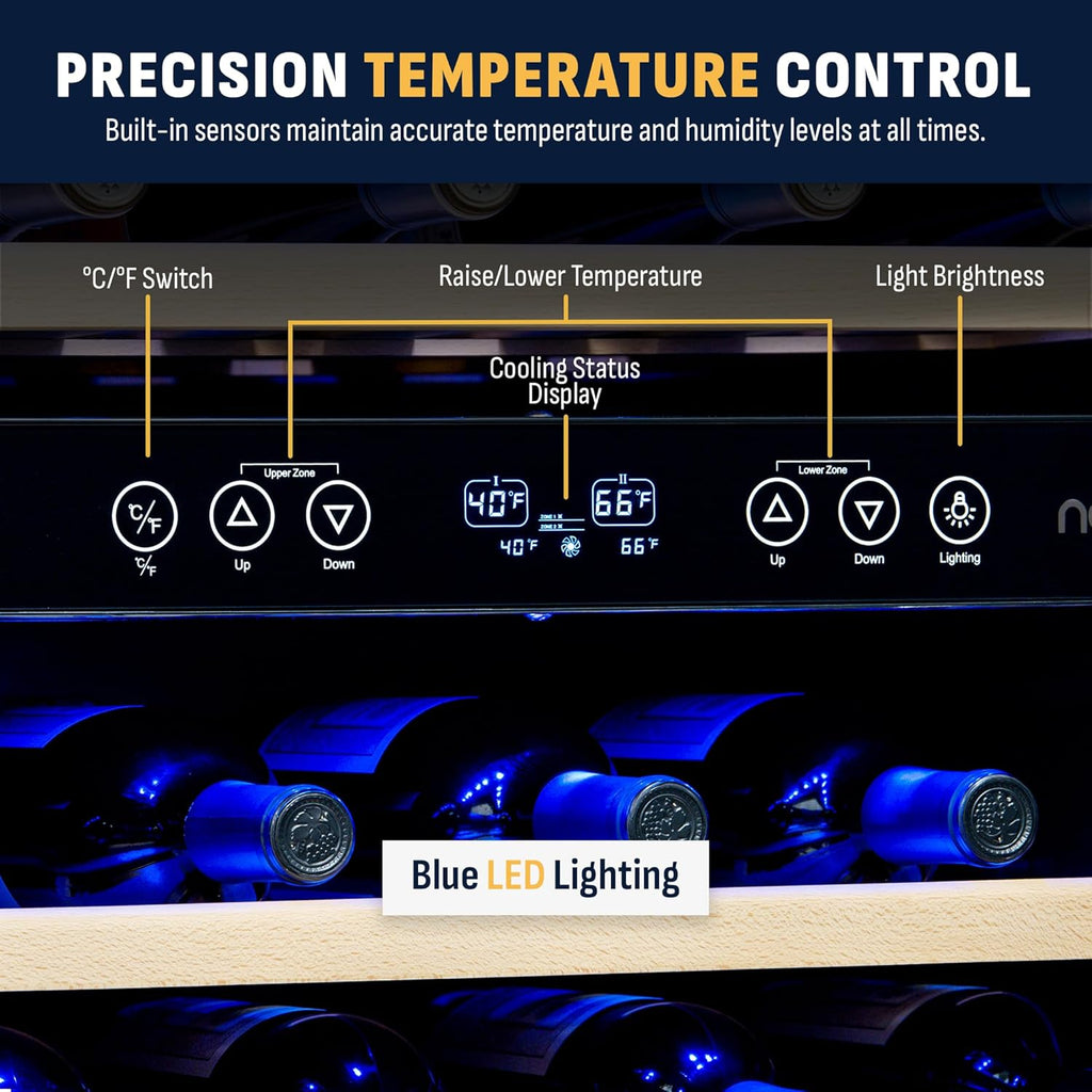 - [DUAL ZONE COOLING] – Upper zone: 40–55°F for whites. Lower zone: 50–66°F for reds—perfect for any wine collection.