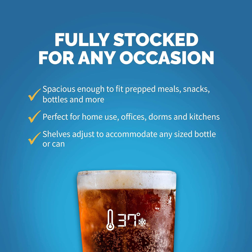 - ADJUSTABLE SIZE FRIDGE - Adjust the removable mini fridge shelves to hold nearly any combination of Drinks, or food. Pack it full of 160 cans or make room for taller sized cans and bottles