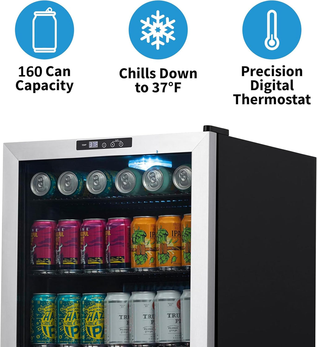 | Special Features | Digital Thermostat (37-65F), 160 Can Capacity, SplitShelf Design and Adjustable Shelves |