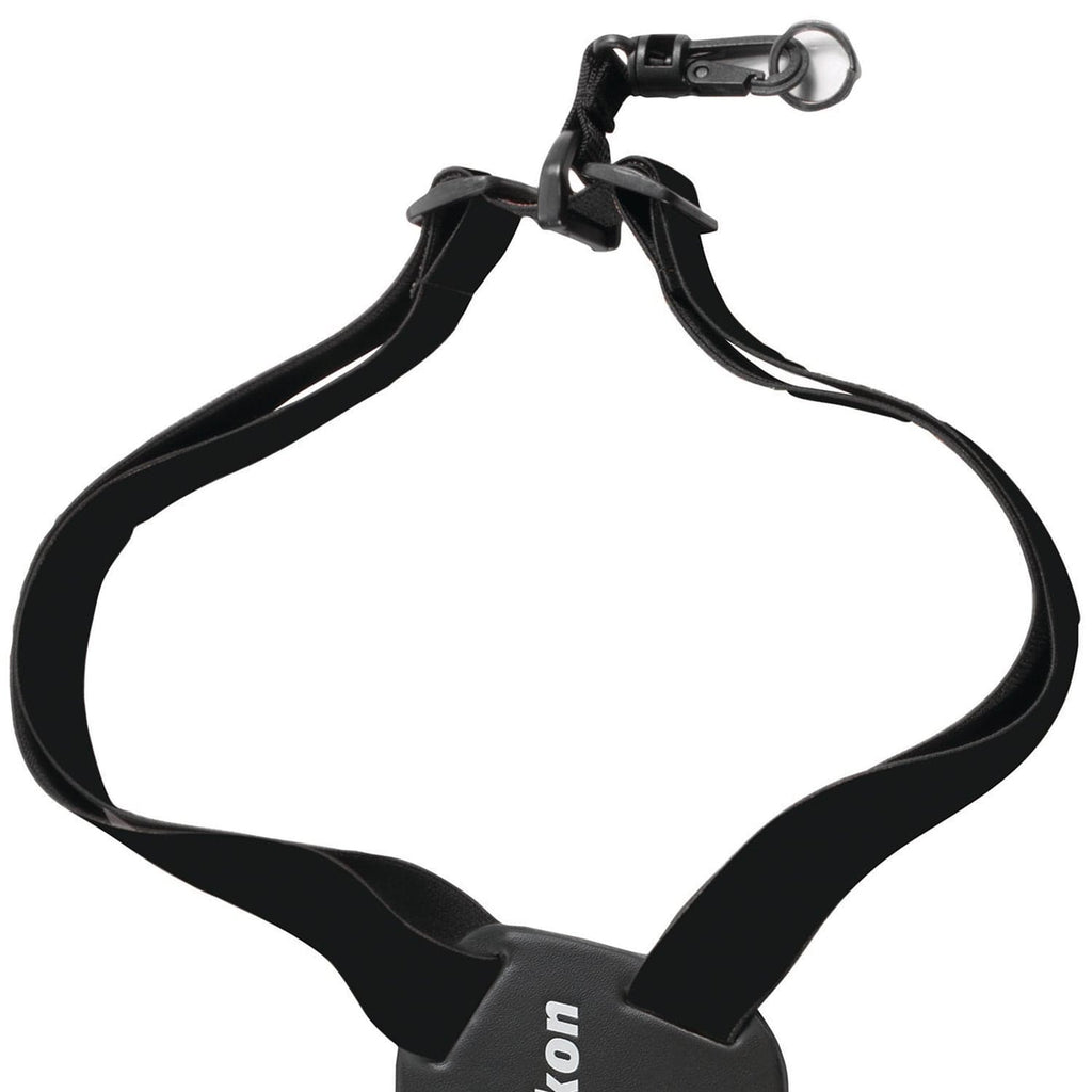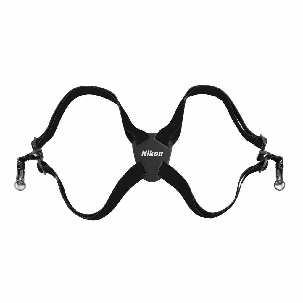 The Nikon PROSTAFF Bino Harness is a lightweight, convenient harness that takes the weight of your binoculars off your neck and distributes it evenly across your shoulders. It has elastic shoulder straps with a secure, quick release connection designed to move smoothly and easily up and down the straps for quick access. And the self-centering back piece features the Nikon logo.