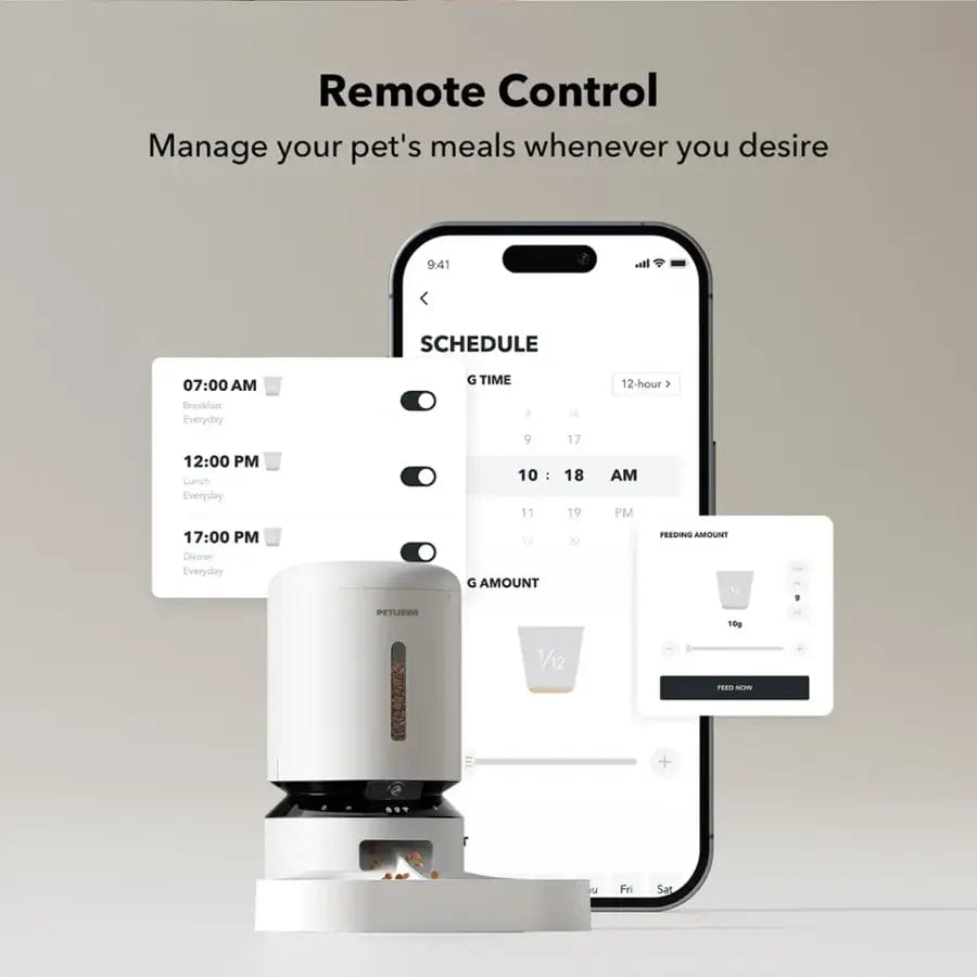 - Smart notifications: You'll receive notifications on your phone for low food/battery levels, blockages, Wi-Fi disconnection, feeder malfunctions, and other issues.