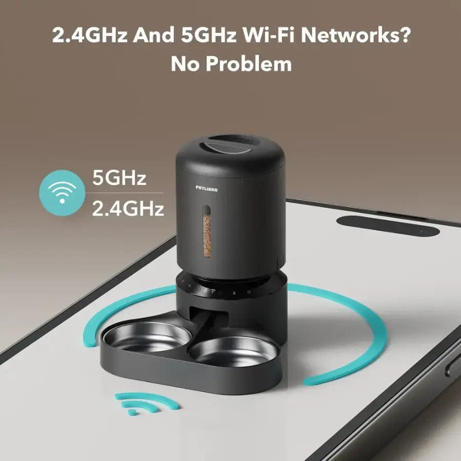- Convenient app control: The Wi-Fi automatic pet feeder seamlessly connects to both 5GHz and 2.4GHz Wi-Fi networks. Schedule and oversee your pet's meals anytime, anywhere with the PETLIBRO app (new version) on your iOS or Android device. Works with Amazon Alexa.