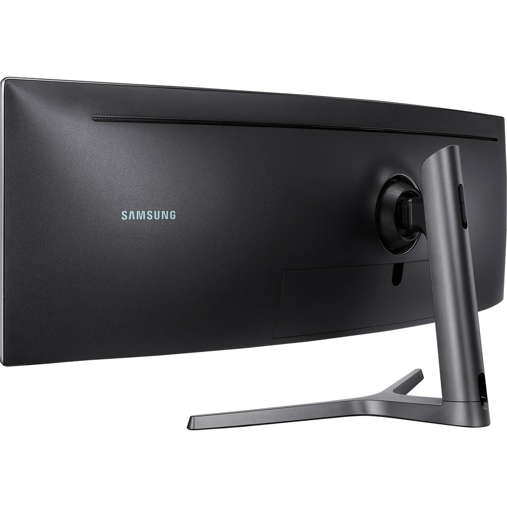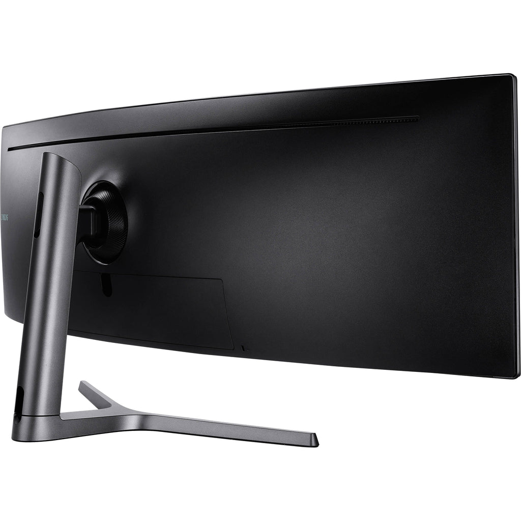 Built to deliver a wide and immersive gaming experience, the C49RG9 49" 32:9 120 Hz Curved FreeSync HDR VA Gaming Monitor from Samsung features a 49" Vertical Alignment (VA) panel with a native resolution of 5120 x 1440, a 32:9 aspect ratio, an 1800R curvature rating, a 120 Hz refresh rate, DisplayHDR 1000 with a peak luminance of 1000 cd/m2, AMD FreeSync II, and QLED backlighting. The 1800R curvature rating helps your eyes to maintain a constant focus distance from the screen. This reduces focus shifts your eyes make when viewing a flat screen, which helps result in less fatigue and more comfortable viewing over extended periods. Additionally, the 120 Hz refresh rate means the display shows a new image 120 times per second for less delay between each individual frame and therefore less input lag. Rounding things out is AMD FreeSync II, which helps remove stuttering delays and screen tearing by dynamically adapting the display's refresh rate to variable frame rates. Samsung has also equipped this display with support for 1.07 billion colors, a static contrast ratio of 3000:1, a 4 ms (GtG) response time, and coverage for 95% of the DCI-P3 and 125% of the sRGB color gamuts using Quantum Dot technology. Using the 178° horizontal and vertical viewing angles, it is possible to watch content from virtually any position. This display has one HDMI 2.0 output and two DisplayPort 1.4 outputs for connecting to your system. For connecting peripherals, there are two USB 3.0 Type-A ports and two USB 2.0 Type-A ports.