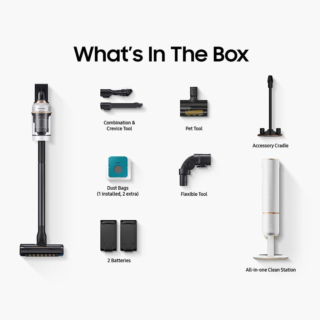 Design meets function with the new Bespoke Jet Cordless Stick Vacuum. Innovative design combines a Clean Station, charging stand and powerful Jet Stick into one show-stopping vacuum. Available in contemporary colors and premium finishes to beautifully fit your decor and lifestyle. Built-in Clean Station lets you empty the dust bin at the press of a button while also charging your vacuum. The Bespoke Jet is our most powerful jet stick yet, letting you tackle any mess across multiple floor types such as carpets, hard floors, and tile. The Bespoke Jet is engineered around a lightweight, maneuverable design, plus a multi-stage filtration system that meets HEPA standards and maintains cleaner air in your home.Features