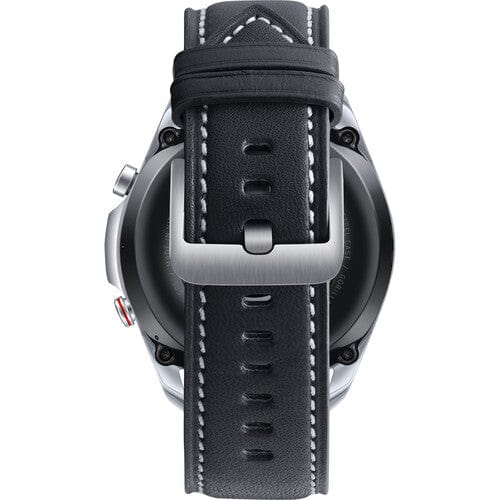 Samsung SM-R845UZSAXAR Galaxy Watch 3 45mm 4G LTE Silver - Certified Refurbished Description Monitor your health, track your fitness, and match your style with the Galaxy Watch3 GPS Smartwatch from Samsung. This smartwatch features a rotating bezel that makes it easy and intuitive to navigate through available apps and manage your music on the full-color 1.4" display. Some apps let you keep track of your health as you work out and throughout the day. You can use them to monitor your heart rate (ECG), blood pressure, and VO2 Max (blood oxygen) with an SpO2 sensor. Other apps can track your workouts and deliver detailed results of exercises, activities, and sports. Meeting your fitness goals requires that you get a good night's rest and the Watch3 can help with that too. Wear it throughout the night and use the sleep tracker to generate an overall Sleep Score. Based on this score, the Watch3 will give you recommendations on how to achieve better rest in the future. When you're full of energy and ready to exercise, the Galaxy Watch3 can play you your favorite music to get you motivated without the need of a mobile phone. Just load up your favorite tracks on its 8GB of built-in storage and pair your favorite Bluetooth headphones. Features Bluetooth, Wi-Fi, GPS & LTE Connectivity Heart Rate, Blood Pressure & VO2 Max Full-Color 1.4" Display Sleep & Stress Tracking Protective Gorilla Glass DX 5D curved front glass and 3D back glass Support for Bluetooth 5.0, Wi-Fi 4 (802.11n), and NFC wireless connectivity Connect to other Samsung devices with the Galaxy Wearables app Use the SmartThings app and remotely control smart devices with the Watch3 Premium leather strap with buckle closure The strap is replaceable and can be swapped out for a new look Built for the Outdoors If you want to break out of the gym or your living room and experience the great outdoors, the Galaxy Watch3 can withstand the elements and keep you on the right path. It achieved the MIL-STD-810G rating for shock, temperature, dust, and high altitude resistance, and is IP68 rated with up to 164' (5 ATM) of water resistance. When outside, built-in GPS tracking records your route and helps you get back from a hike or jog. Multi-Day Battery The built-in battery has enough power for up to 56 hours. You can recharge it via the included wireless USB charging pad, or if you own a Galaxy phone with PowerShare, you can get power directly from your smartphone. Stress Level Monitoring The Galaxy Watch3 can detect your stress level and provide you with calming breathing guides to help you relax. Work Out at Home The Galaxy Watch3 can be paired with various Samsung smart TVs, where you can work out to over 120 fitness programs and follow onscreen video demonstrations. Simple choose a workout and cast it to your TV. As you go, the Watch3 will track your progress automatically and your TV will display your heart rate in real time. Trip Detection For added peace of mind, the Watch3's Trip Detection feature can detect if you've fallen, notify an emergency contact, and share your location if needed. Match Your Style Over 50,000 watch faces are available for the Watch3 or you can make your own with over 40 different combinations. Create watch faces that look good and still provide you with essential information at a glance. You can even match your watch face to your outfit with the My Style feature. You simply take a picture of what you're wearing with your phone, send it to the watch, and it will generate multiple faces in different patterns, and with a color scheme that matches. Auto Chat History When receiving a new text, the Watch3 can link it with others so you can more easily follow the conversation. It will even show images in-line with text on the screen. Smart Reply There's no need to stop what you're doing to send a quick response to a message with Smart Reply.