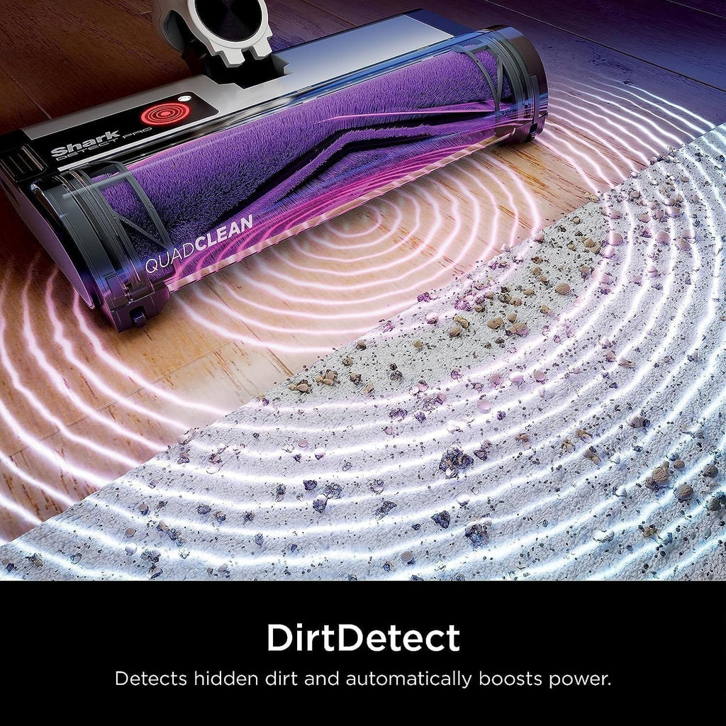 Meet the new Shark Detect Pro Cordless Stick Vacuum. Its ultra-intelligent detect suite gives you 4 deep-cleaning technologies that detect & react to their surroundings. DirtDetect senses the hidden dirt that hides in your home, and automatically boosts power to pull it in. EdgeDetect senses edges and corners and doubles suction* power for more powerful cleaning* (vs. ECO mode). FloorDetect senses carpets and hard floors around your home, and optimizes your vacuum’s performance based on the floor type. Lastly, LightDetect automatically illuminates dark spaces, so you can easily track down hidden dirt. All four of these technologies combine in the Shark Detect Pro to give you up to 50% better* dirt pickup (*Based on ASTMF608, eco vs. boost). Never swap nozzles with the QuadClean Multi-Surface brush roll that tackles four cleaning targets: fine dust, pet hair, large debris, and dust along edges. For incredible maneuverability, Detect Pro gives you full-sized* cordless power, in a 30% lighter** frame (*vs. IZ862H, **Based on ASTMF608, vs IZ540H). Change the way you clean with the new Shark Detect Pro Cordless Stick Vacuum.