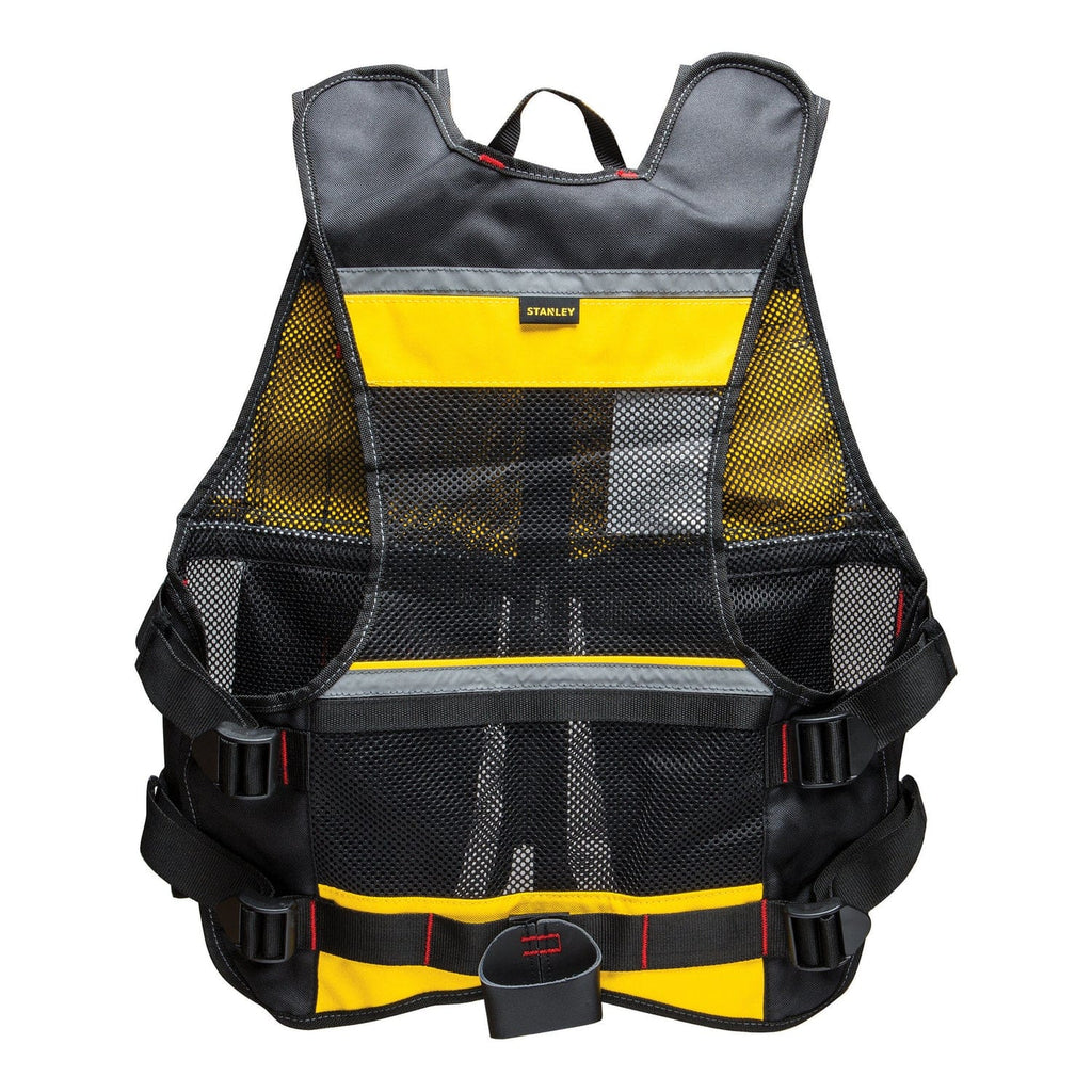 The STANLEY FATMAX Tool Vest is designed with different tool compartments for easy carriage and convenient access to frequently used tools. Its mesh material allows air movement for comfort throughout the day. The vest also has adjustable shoulder straps for maximum comfort and a secure fit - 1 size fits all.