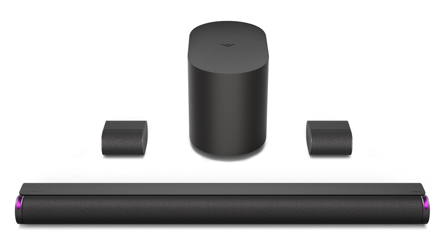 Reach the summit of 360-degree sound powered with Dolby Atmos through two auto-rotating speakers. Combined with two surround speakers and a wireless subwoofer, the Elevate system presents a deep and dynamic sound stage. Easily connect to your TV with the included HDMI cable, stream music from a mobile device via Bluetooth, and download the VIZIO mobile app for enhanced soundbar control using your smartphone. Soundbar remote control not included.
