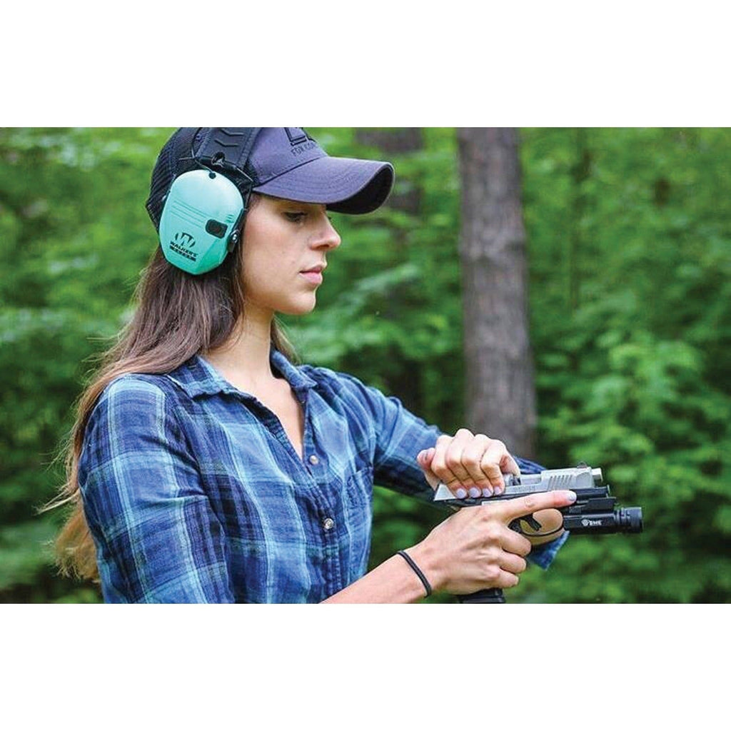 Hear everything you need to with the Light Teal Walker's Game Ear GWP-RSEM-LTL Razor Electronic Muff. This electronic muff features low profile ear cups and rubberized coating for a proper and comfortable fit. The compact folding design makes them easy to take on any outdoor adventure.