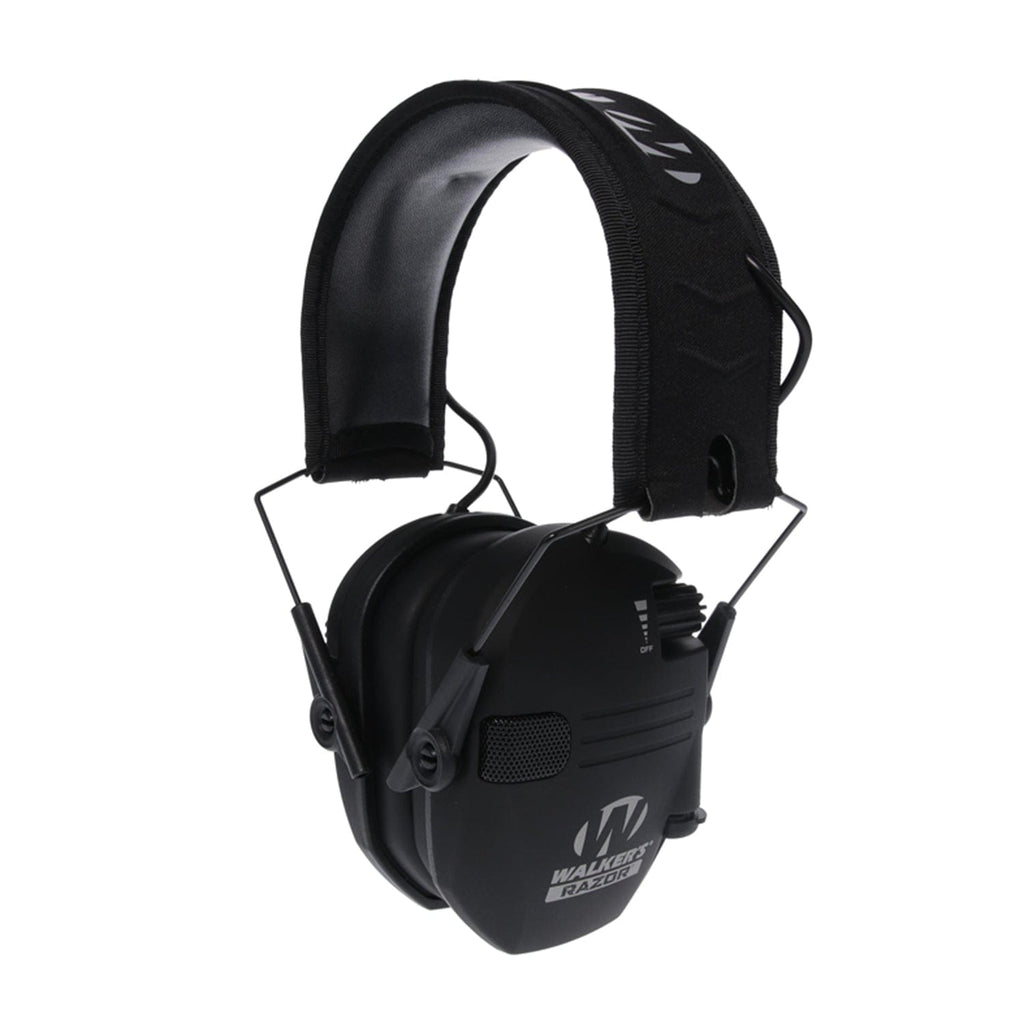 The Razor Slim Electronic Muff from Walker's Game Ear is a quality electronic headset lets you hear what you need to hear and and suppress what you don't. designed for hunters and shooters. Unlike traditional bulky earmuffs, these electronic muffs feature a low-profile design that sits snugly against your head. The slim construction makes them easy to wear and carry wherever you go. And the cushioned earcups provide exceptional comfort, even during long hours of wear, ensuring you can focus on your activities without distraction. 2 omnidirectional microphones provide ambient sound amplification and reduce damaging noise by up to 23 dB so you can enjoy your favorite outdoor activities without damaging your hearing. The headphones also feature an active sound compression system that automatically adjusts the attenuation based on ambient noise levels. And say goodbye to muffled sounds and distorted frequencies. The built-in high-definition speakers deliver clear, amplified audio directly to your ears. With the Razor Slim, you can enjoy crisp, natural sound quality without compromising your safety.