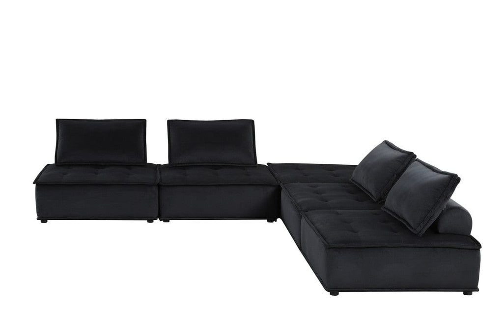 Style your room with the Ana Sectional Sofa Ottoman. The soft velvet upholstery along with the cushion back support of the sofa is the most comfortable spot for you to relax in after a long day. The modern aesthetic and tufted seating will surely enhance the décor of any living space, whether it be the living room, bedroom, or even the home office. Each seat unit comes with the back cushion and easily becomes an ottoman without it. The modular aspect of this sofa allows you to create a sectional in the configuration you desire!