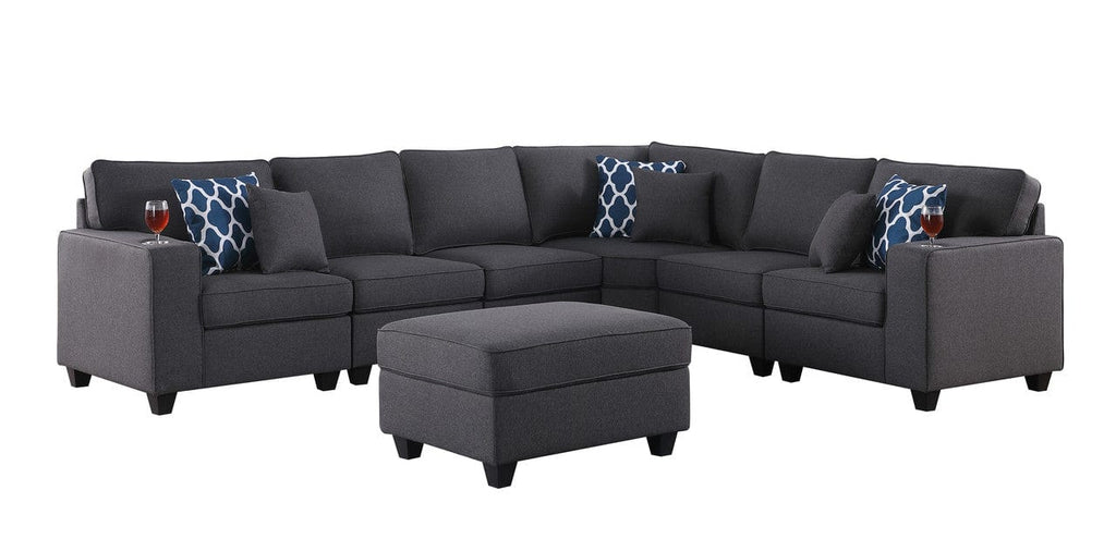 Willow & Hearth Cooper 125"W Dark Gray Linen 7Pc Reversible L-Shape Sectional Sofa with Ottoman and Cupholder