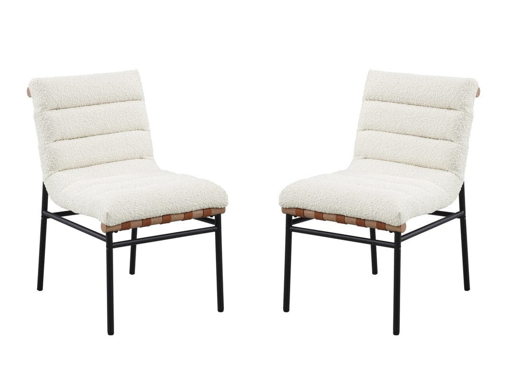 Willow & Hearth Lahni White Boucle Fabric Set of 2 Dining Chair with Black Iron Legs