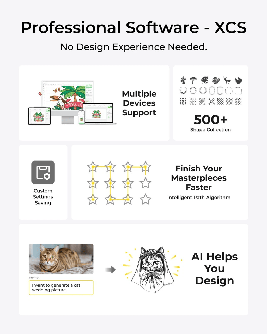 - Smart Software Support – xTool Creative Space & LightBurn compatible.