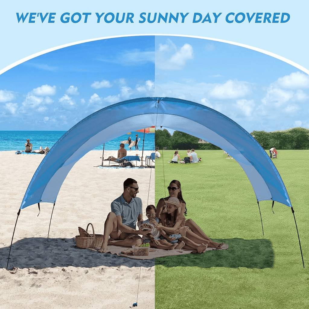 Zingtto Beach Sun Shade, UPF 50+ UV Protection, 150 Sq. Ft. Windproof Canopy Tent, Easy Set Up, Compact & Portable for Beach, Camping, Backyard, Blue